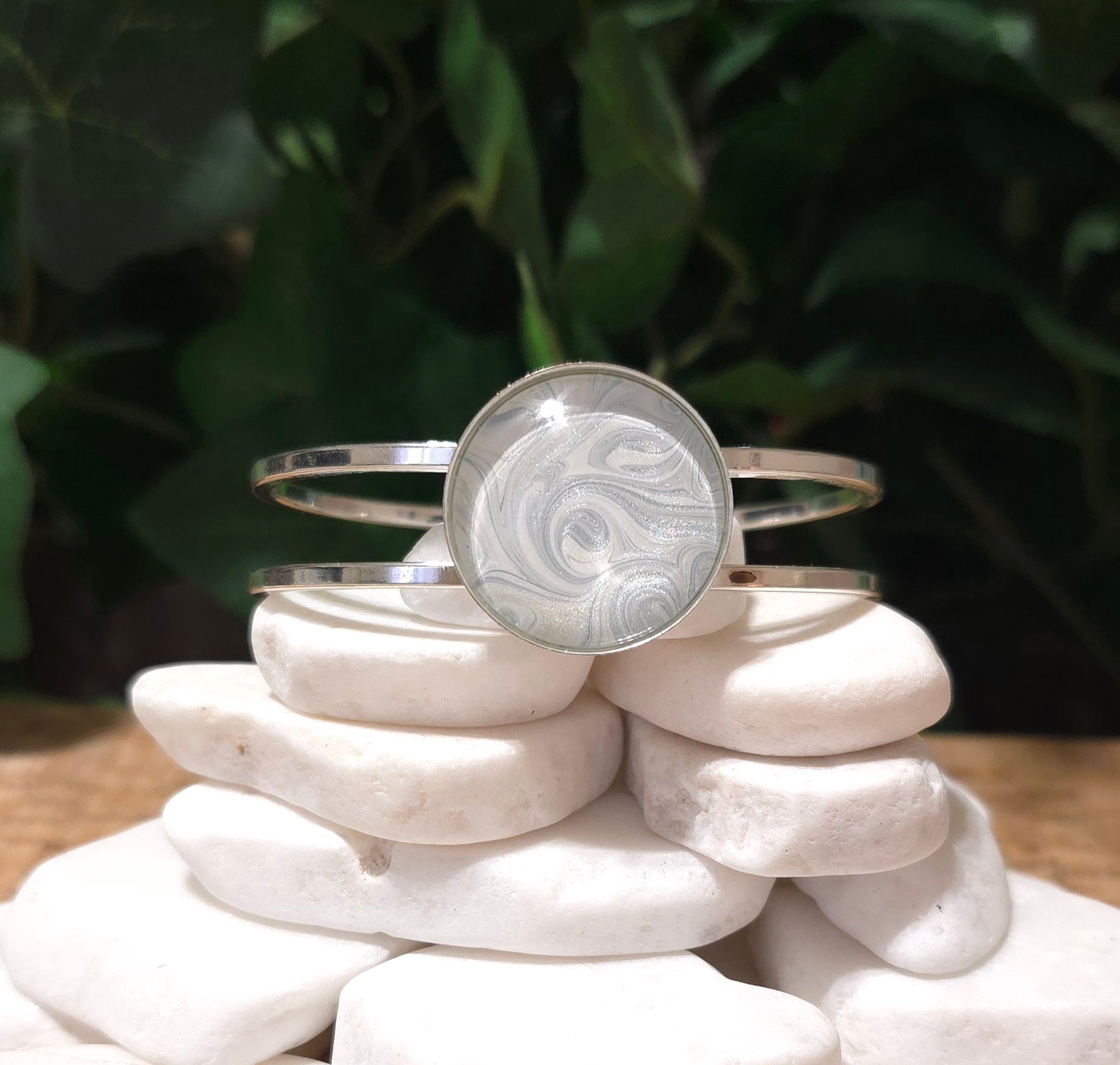 Silver Plated Bangle Bracelet with Hand Painted Bezel